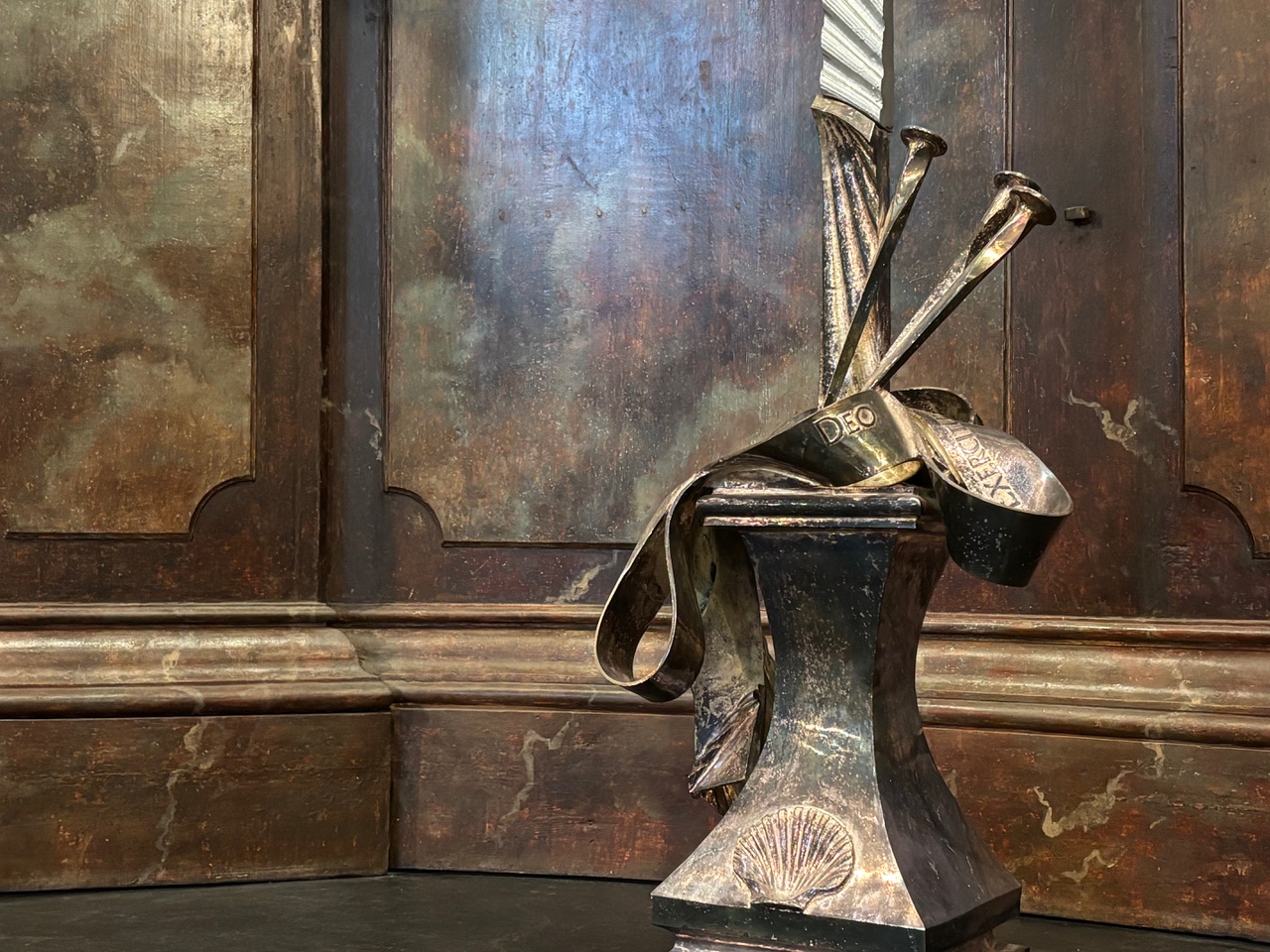 The main altar is the work of the academic sculptor Otmar Oliva. The altar, which stands on bronze legs, is made from a single piece of onyx originating from Pakistan. The altar was sanctified in October 2015 to commemorate the 500th anniversary of the birth of St. Teresa of Jesus, the foundress of the Discalced Carmelites. At the foot of the silver cross, also by Otmar Oliva, are three nails with which Christ was pierced on the cross, together with the words of the prophet Elijah: “I have been very zealous for the Lord, God of hosts,” the motto of the Discalced Carmelites.