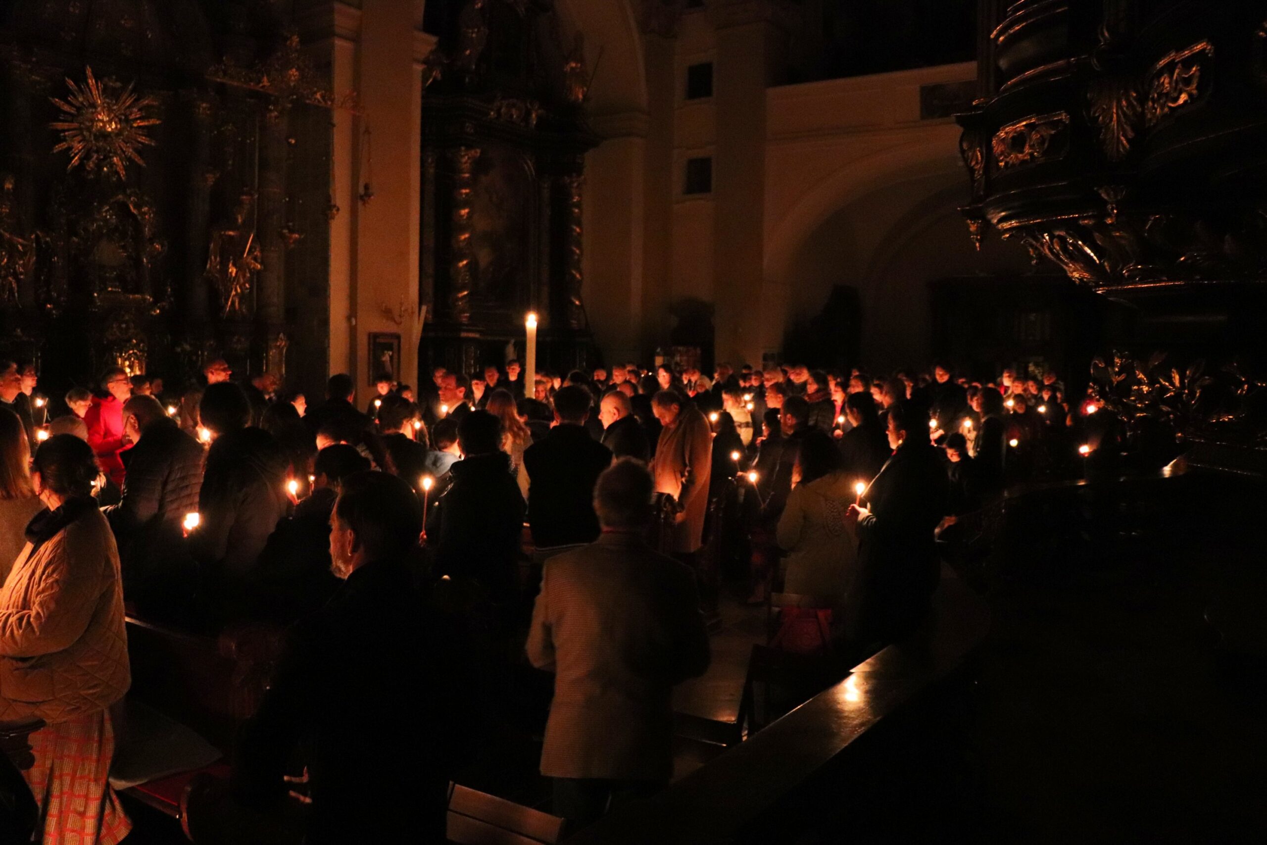 At Easter, Christians celebrate Christ’s victory over death; it is the most important Christian feast. The liturgy centers on the Easter Triduum, that is, the three days spanning from Thursday evening to Resurrection Sunday. On Thursday evening, we commemorate Jesus’ Last Supper with his disciples. During this liturgy, the foot-washing ceremony takes place, as described in the Gospel of John, which is meant to illustrate the meaning of Jesus’ mission as one of loving service. Friday is the commemoration of the crucifixion. During the liturgy, we read the Passion according to John, touch the cross, and pray for the whole world. Saturday, the day of Christ’s repose in the tomb — all is silent; no liturgy is celebrated. After sunset, Sunday begins, and with it the celebration of the Resurrection. In our church, we celebrate the Easter Vigil, the main service on Sunday at 4:30 a.m., before dawn. It has four parts: the ceremony of light, the liturgy of the word with seven Old Testament readings, the baptismal service, and the Eucharistic celebration. You are cordially invited to participate.