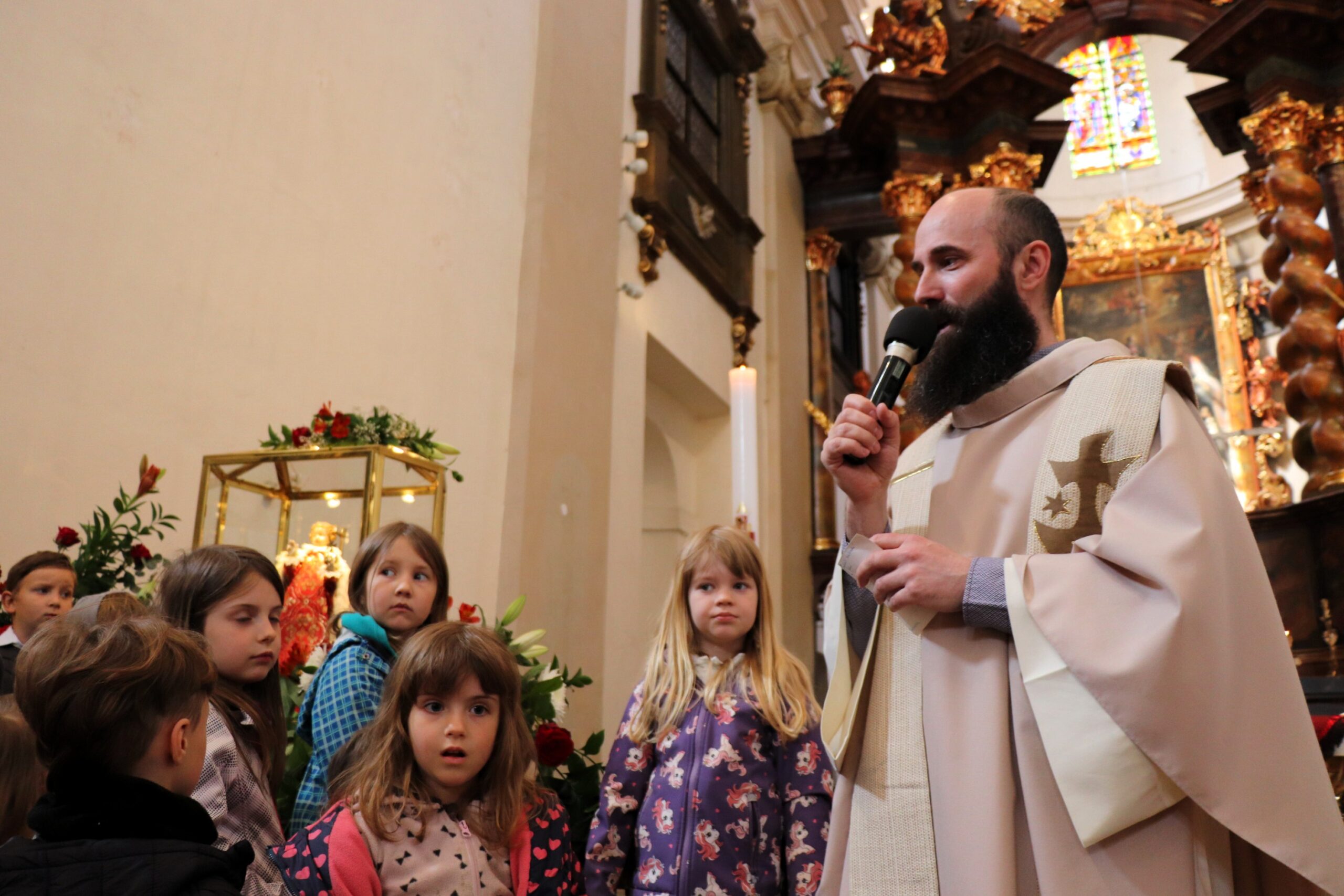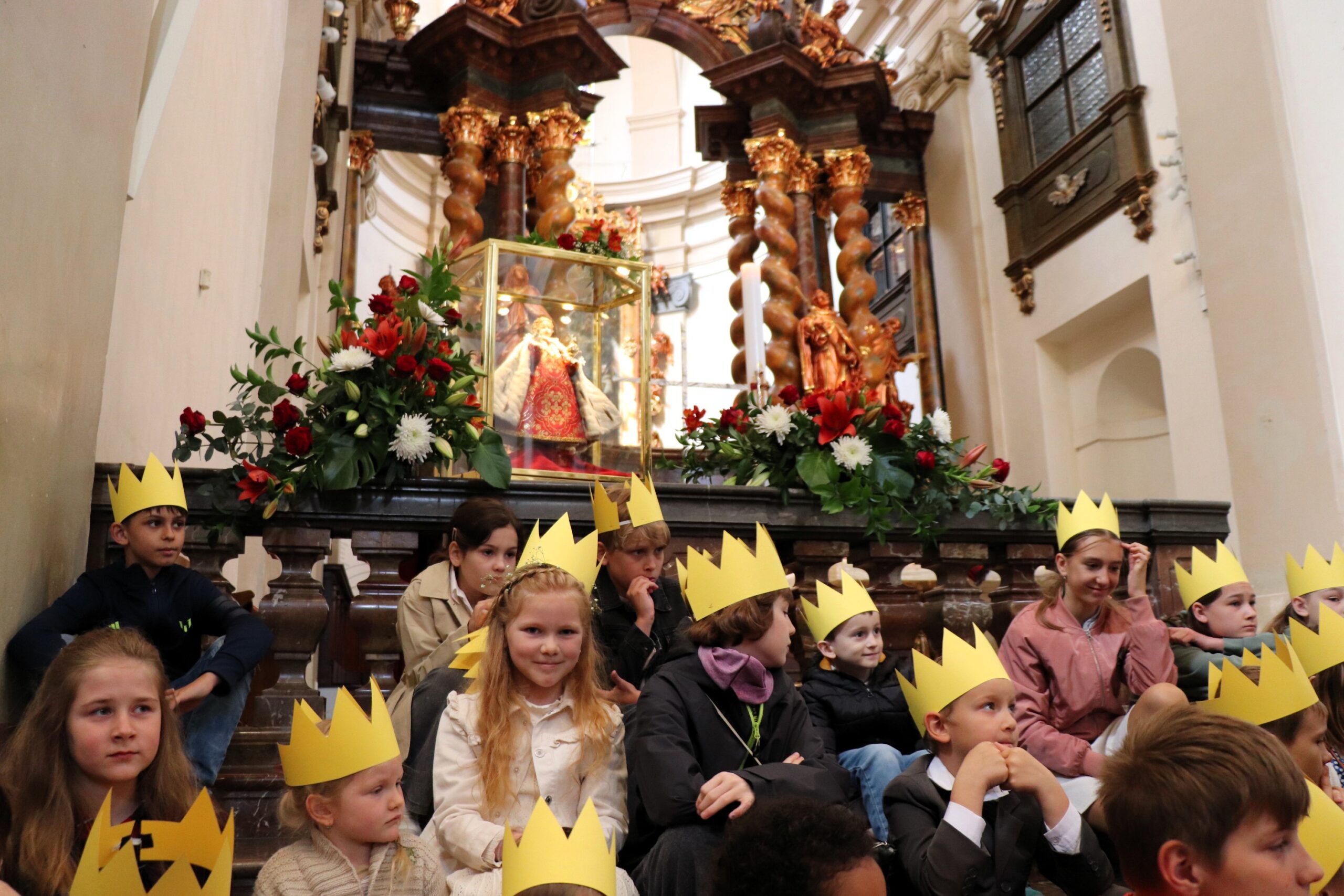 This celebration originates in history. The family of the Earls of Martinice were enormous admirers of the Infant Jesus. At their initiative a procession of the statue of the Infant Jesus took place in 1651. It travelled from one Prague church to another. In 1665 the Bishop of Prague ceremonially decorated the gracious statue with a crown. The highest burgrave of the Czech kingdom, Bernard of Martinice, had the crown made for the statue. Currently, the stature is decorated with a gilded silver crown from 1767. The newest crown was donated by Pope Benedict XVI during his visit to Prague in 2009. It can be seen in the museum together with a historical crown from 1820.