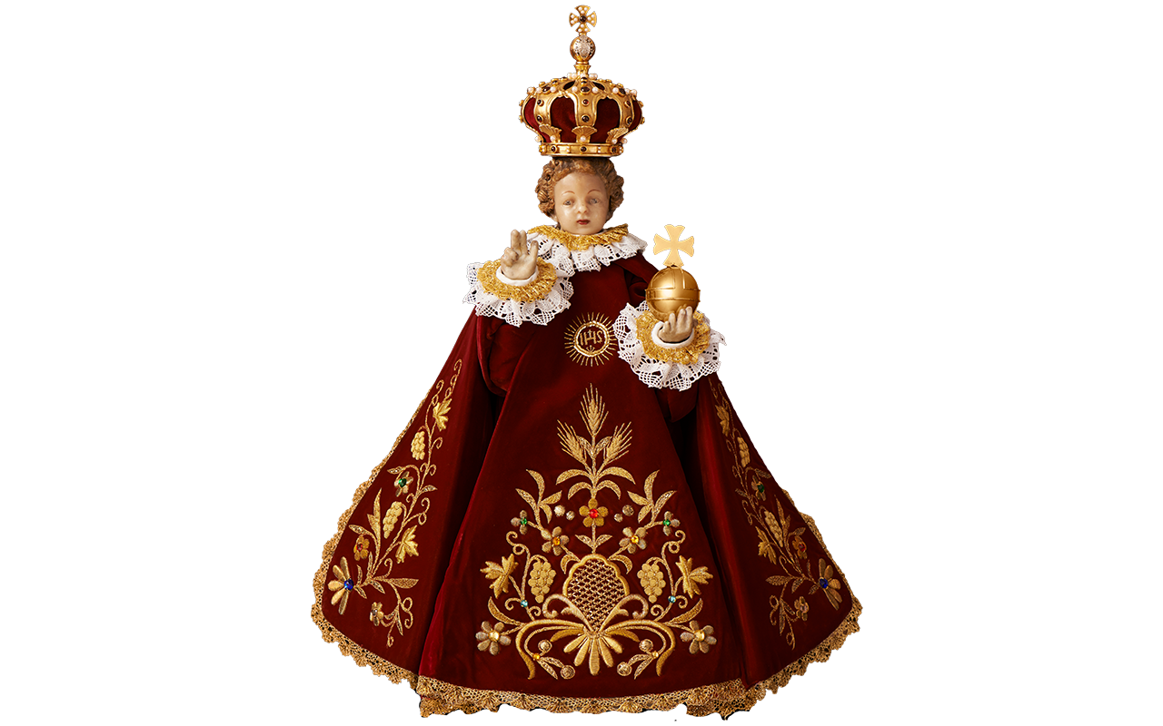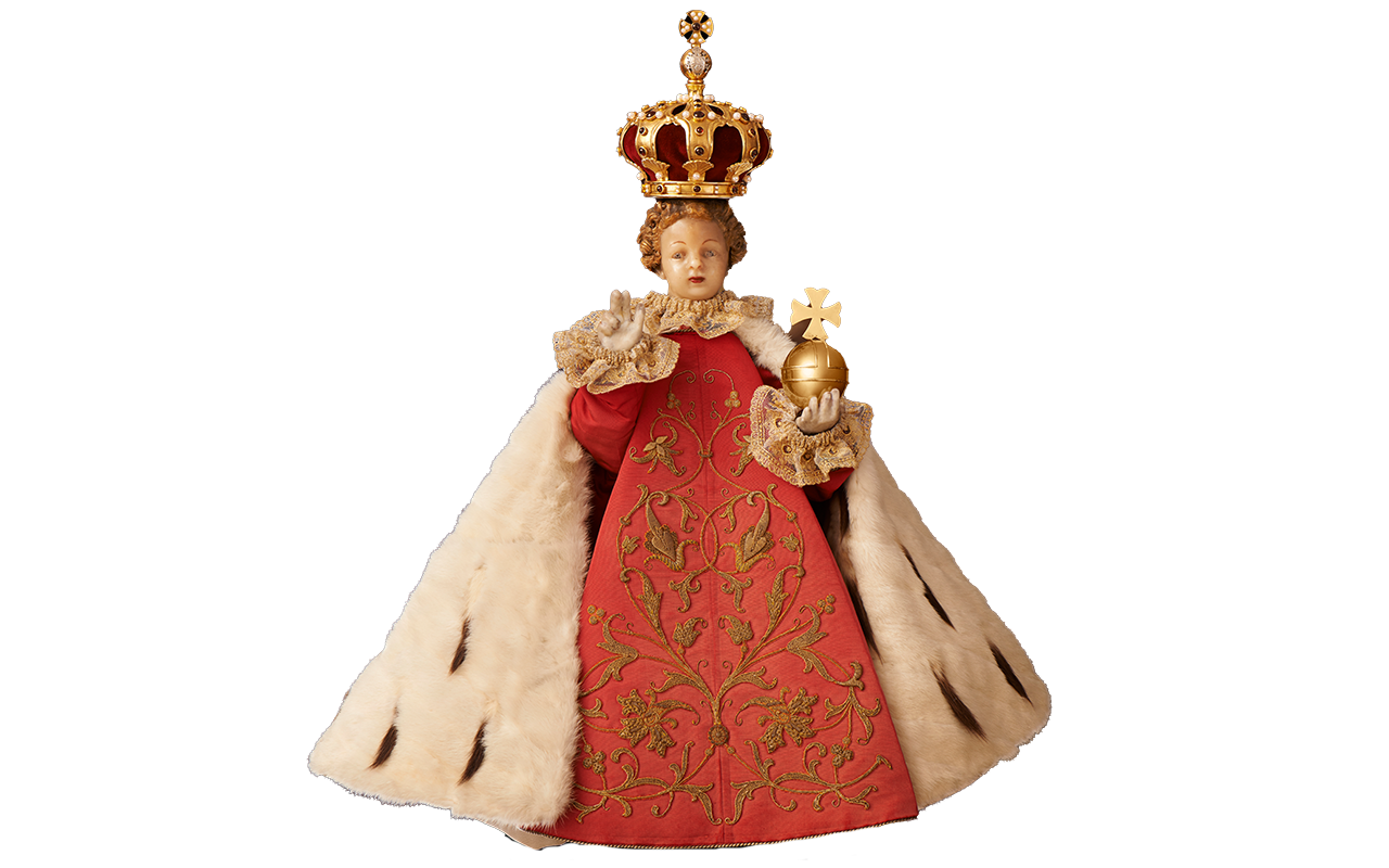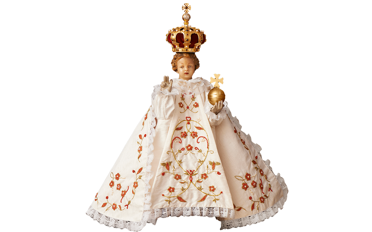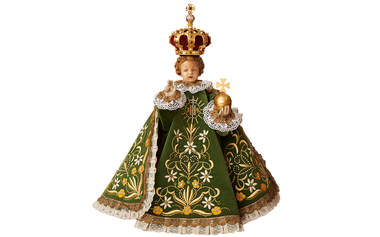 Pražské Jezulátko lidé znají především v jeho slavnostních šatech. Oblékání Jezulátka zdůrazňuje jeho lidství – jako rodiče oblékají své dítě, tak je oblékána i soška. Roucha samotná však zároveň poukazují na jeho královský majestát, a tedy naznačují jeho božství.