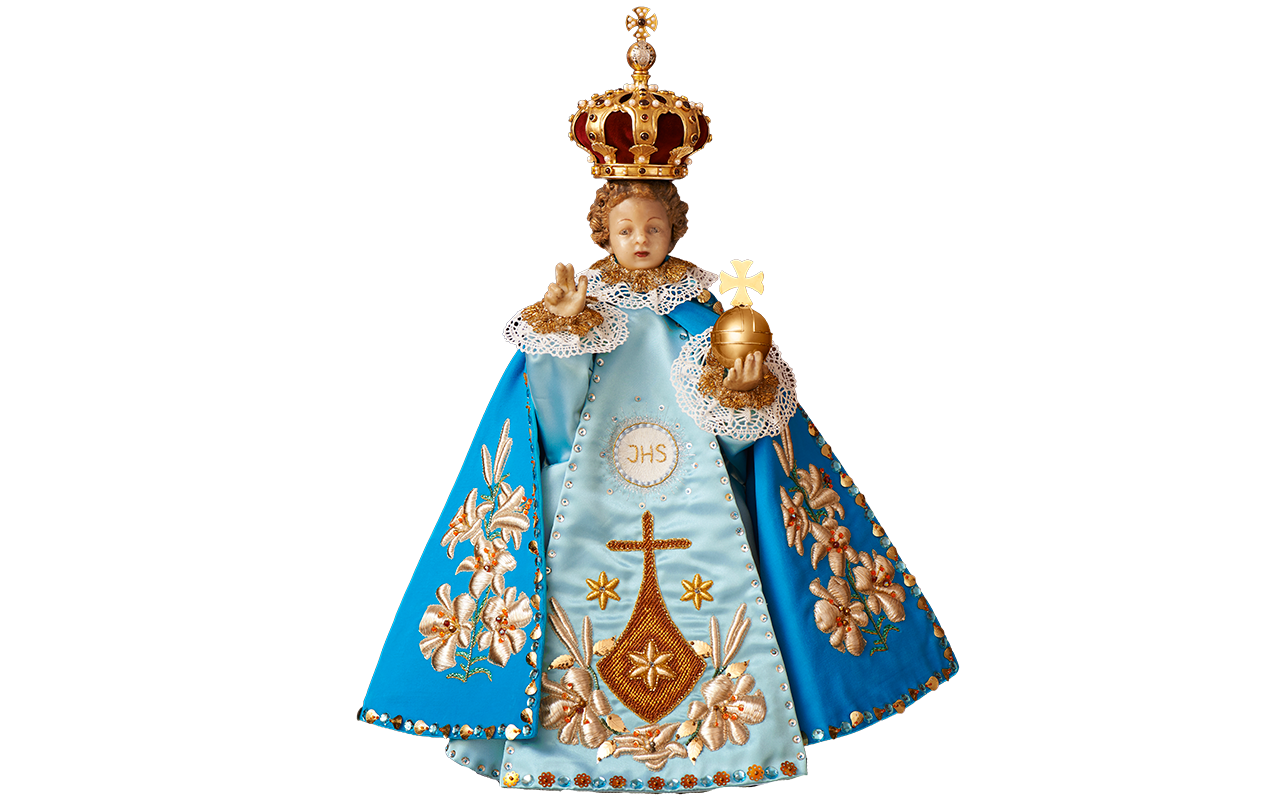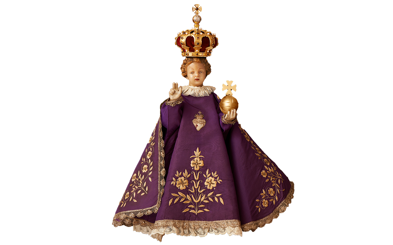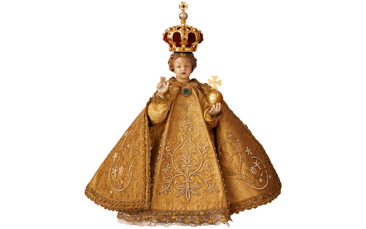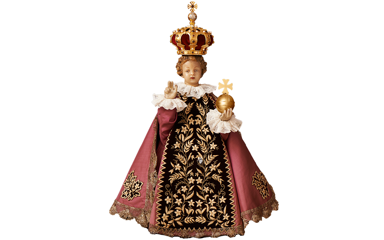 Pražské Jezulátko lidé znají především v jeho slavnostních šatech. Oblékání Jezulátka zdůrazňuje jeho lidství – jako rodiče oblékají své dítě, tak je oblékána i soška. Roucha samotná však zároveň poukazují na jeho královský majestát, a tedy naznačují jeho božství.